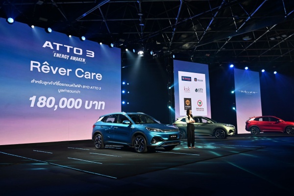 บริษัท Rêver Automotive จำกัด (เรเว่ ออโตโมทีฟ) ในฐานะผู้จัดจำหน่ายและให้บริการหลังการขายสำหรับกลุ่มรถยนต์พลังงานใหม่ในประเทศไทยอย่างเป็นทางการ (Thailand Authorized Distributor) จัดแถลงข่าวเปิดตัว BYD ATTO 3 ภายใต้แนวคิด “ENERGY AWAKEN ปลุกพลังใหม่ ปลุกชีวิตที่ดีกว่า” พร้อมประกาศราคา 1,199,900 บาท (หลังรับเงินสนับสนุนจากภาครัฐ) เพื่อให้คนไทยได้สัมผัส Premium SUV เทคโนโลยีขั้นสุดของยานยนต์พลังงานไฟฟ้าที่แท้จริง ซึ่งเปี่ยมไปด้วยสมรรถนะ เทคโนโลยี และนวัตกรรม ตลอดจนสุดดีไซน์โฉบเฉี่ยว พร้อม Rêver Care ดูแลรถทุกคันแบบจัดเต็มมูลค่า 180,000 บาท การันตีเงินอุดหนุนจากภาครัฐสูงสุดที่ 150,000 บาท โดยมีโชว์รูมอีกกว่า 32 แห่งทั่วประเทศร่วมสร้างความเชื่อมั่นขับเคลื่อนประเทศสู่ NEV Nation