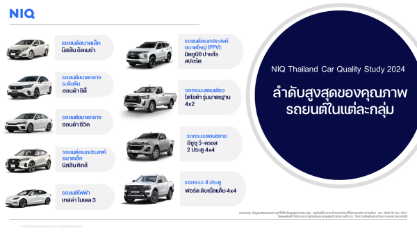 นีลเส็นไอคิว (ประเทศไทย)เปิดเผยผลสำรวจคุณภาพรถยนต์ล่าสุดในประเทศไทยโดยสำรวจผู้ซื้อรถยนต์จำนวน 3,390 คน