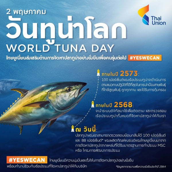 นายอดัม เบรนแนน ผู้อำนวยการกลุ่มด้านความยั่งยืน บริษัท ไทยยูเนี่ยน กรุ๊ป จำกัด (มหาชน) กล่าวว่า “เนื่องในวันทูน่าโลก 2 พฤษภาคม 2566 ไทยยูเนี่ยนประกาศเดินหน้าส่งเสริมการจัดหาปลาทูน่าที่เป็นแหล่งโปรตีนคุณภาพอย่างยั่งยืนภายใต้กลยุทธ์ Seachange® เพื่อสร้าง “การมีสุขภาพที่ดี และท้องทะเลที่อุดมสมบูรณ์ หรือ Healthy Living, Healthy Oceans” อย่างต่อเนื่องเพื่อคนรุ่นต่อไป”