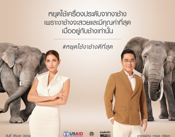 องค์การเพื่อการพัฒนาระหว่างประเทศของสหรัฐอเมริกา หรือ ยูเอสเอด (USAID) องค์กรไวล์ดเอด (WildAid) และกรมอุทยานแห่งชาติ สัตว์ป่า และพันธุ์พืช (อส.) ร่วมกันเปิดตัว โครงการรณรงค์ ล่าสุด ‘งาช้างอยู่กับช้างใช่ที่สุด – Only elephants wear ivory best’ เพื่อลดความต้องการซื้อและสวมใส่ เครื่องประดับจากงาช้างในหมู่ผู้ใช้ที่ส่วนใหญ่เป็นผู้หญิง พร้อมเผยแพร่โฆษณารณรงค์ 2 เรื่อง ที่มี ซินดี้ สิรินยา บิชอพ นักแสดง นางแบบ และอาจารย์ช้าง ทศพร ศรีตุลา นักโหราศาสตร์และผู้เชี่ยวชาญด้านฮวงจุ้ยชื่อดังเป็นทูตโครงการ เพื่อร่วมตอกย้ำว่า ไม่มีใครใส่งาช้างได้คู่ควรและสวยงามเท่ากับตัวของช้างเอง