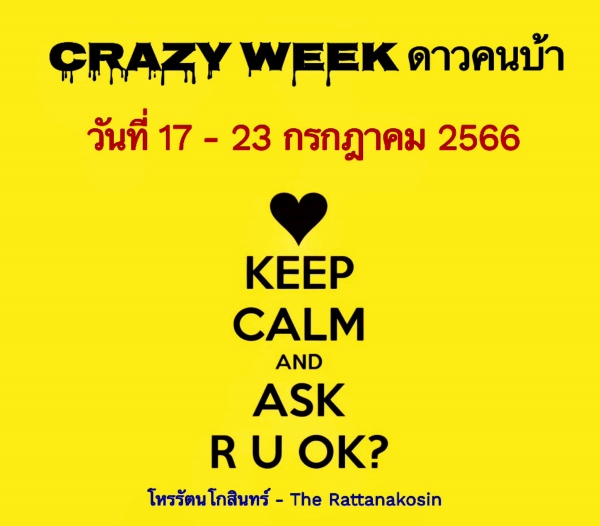 โหรรัตนโกสินทร์ ทำนายทายทักถึงดวงชะตา 12 ลัคนาราศี ในช่วงเวลาของการโคจรของดวงดาวตั้งแต่วันที่ 17 – 23 กรกฎาคม 2566 ที่โหรรัตนโกสินทร์ใช้คำว่า “Crazy week สัปดาห์บ้าบอ!!” ดังนี้