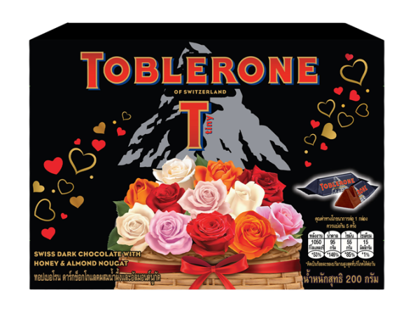 สำหรับช็อกโกแลตรสหวานละมุน “ทอปเบอโรน” สุดคลาสสิค นำเข้าจากสวิตเซอร์แลนด์ ปีนี้มาในธีม Let rose say love ที่นำเอาความเชื่อแบบสากลซึ่งมีมายาวนานมาประยุกต์ใช้ เพื่อสื่อคำพูดแทนใจในวันแห่งความรักด้วยดอกกุหลาบ พร้อมนำลวดลายของดอกกุหลาบทั้งหมด 4 สี ได้แก่ สีชมพู สีแดง สีส้ม และสีขาว มาออกแบบอย่างพิถีพิถันลงบนบรรจุภัณฑ์ในขนาด 100 กรัม ราคา 84 บาท โดยกุหลาบสีแดง แทนคำว่า “ฉันรักเธอ” แสดงออกถึงความรักนิรันดร์ กุหลาบสีชมพู แทนคำว่า “ฉันกำลังแอบชอบเธอ” เหมาะสำหรับความรักเพิ่งเริ่มชอบพอกัน ส่วนคนโสดไม่ต้องน้อยใจเพราะดอกกุหลาบไม่ได้เหมาะสำหรับคู่รักเพียงอย่างเดียว ยังมีดอกกุหลาบสีอื่นๆ อีกอย่างสีส้ม แทนความหมายอื่นนอกเหนือจากความโรแมนติก เช่น การส่งมอบพลังและกำลังใจ หรือความรักในรูปแบบครอบครัว และดอกกุหลาบสีขาว หมายถึงความบริสุทธิ์ ไร้เดียงสาสื่อถึงการให้รางวัลตนเองเพื่อฉลองการเริ่มต้นครั้งใหม่ ในเทศกาลแห่งความรักเช่นนี้ ทอปเบอโรนจึงขอเคียงข้างทุกคนไม่ว่าจะอยู่ในรูปแบบความรักสถานะใด นอกจากนี้ยังมีความพิเศษภายในบรรจุภัณฑ์อีกด้วย ซึ่งเมื่อเปิดสลีฟที่ห่อหุ้มขึ้นมาก็จะได้พบกับดอกกุหลาบที่มาในรูปแบบ 3D สวยงาม ตกแต่งล้อมรอบด้วยกราฟฟิกรูปหัวใจ พร้อมให้คุณได้ส่งข้อความในใจถึงคนที่คุณรักได้อีกด้วย