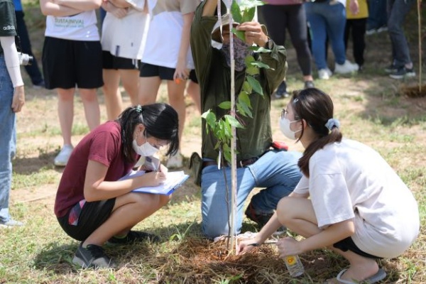 น้องธีร์ ลือสุขประเสริฐ เกรด 11 เป็นอีกคนหนึ่งที่ เชิญชวนให้มาช่วยกันปลูกต้นไม้ ให้มากกว่านี้ เพราะเป็นสิ่งที่จะช่วยธรรมชาติ และช่วยโลกให้ดีขึ้น เช่นเดียวกับ น้องทญา สุขสันต์ปานเทพ หรือ น้องมิ้ม เกรด 11 ที่บอกว่า ได้มาทำกิจกรรมปลูกป่าในวันนี้ เป็นการเปิดประสบการณ์ เพราะช่วงโควิดก็ไม่ได้ ออกไปไหนการที่เรามาปลูกป่าก็ช่ วยโลก อยากให้เพื่อนๆมาร่วมกิจกรรม เราได้เข้าใจธรรมชาติ ช่วยป่า ช่วยโลก น้องมิ้มเล่าด้วยว่า โรงเรียนสนับสนุนนักเรียนให้ ทำกิจกรรม โดยมีการจัดตั้งชมรมต่างๆ และเธอเป็นสมาชิกของชมรม Seed of Hope ที่ทำกิจกรรมเกี่ยวกับเรื่องต้ นไม้เช่นกัน เพื่อที่จะหารายได้ไปใช้ในเรื่ องของการปลูกป่า