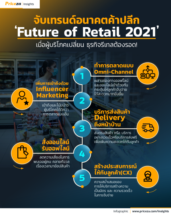 วันนี้ไพรซ์ซ่า นำ 5 เทรนด์อนาคตของธุรกิจค้าปลีกที่น่าจับตาในปี 2021 มาเพื่อเป็นแนวทางในการปรับประยุกต์ใช้ในการสร้างแผนการตลาดพร้อมทั้งช่วยยกระดับแบรนด์ให้ก้าวเข้าสู่ธุรกิจดิจิทัลที่เหมาะสมกับ ดีมานด์ และพฤติกรรมของผู้บริโภค