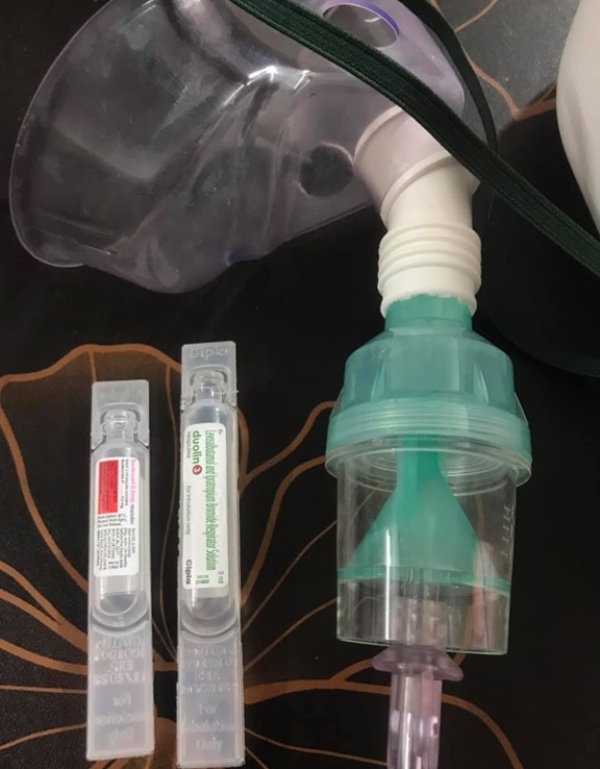 หลังจากหมอให้ prescription มาแล้ว ปฏิบัติการช๊อปปิ้งของจนจิตตกก็เริ่มขึ้นค่ะ นอกจากยาที่ต้องซื้อแล้ว ก็ประกอบด้วย digital thermometer (ซึ่งที่บ้านมีอยู่แล้ว แต่ถ่านหมด การแก้ปัญหาคือซื้อใหม่มันไปเลยจ้า) Oximeter เครื่องวัดออกซิเจน Nebulizer เครื่องพ่นยา Inhaler Steamer เครื่องพ่นไอน้ำ พร้อมด้วยออกซิเจนกระป๋อง (ซื้อมาเผื่อไว้ สำหรับคนจิตตกแบบข้าพเจ้า 555) และเครื่องฟอกอากาศแบบฆ่าไวรัสได้ สั่งจากอเมซอนมาเลยจ้า