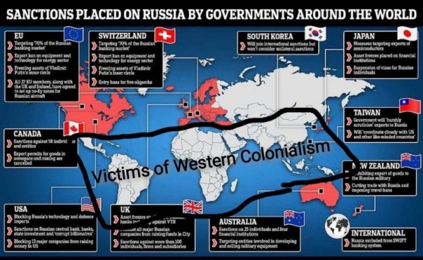 เมื่อนับจำนวนประชากรแล้ว ประเทศที่ไม่คว่ำบาตรรัสเซียมีมากกว่า ๓ พันล้านคน ประเทศเหล่านี้พร้อมจะพัฒนาเศรษฐกิจร่วมกันไปกับรัสเซีย และต่างก็รู้เช่นเห็นชาติอเมริกาหมดแล้วว่ามีพฤติกรรมที่ผ่านมาเป็นอย่างไร