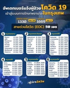 นอกจากนี้ตามจังหวัดต่าง ๆ ยังจัดตั้งศูนย์ประสานงานเพื่อรับผู้ป่ วยเข้าสู่ระบบด้วย โดยเข้าไปดูรายละเอียดได้ที่เว็บไซต์หรือเฟซบุ๊กสำนักงานสาธารณสุขของแต่ละจังหวัด
