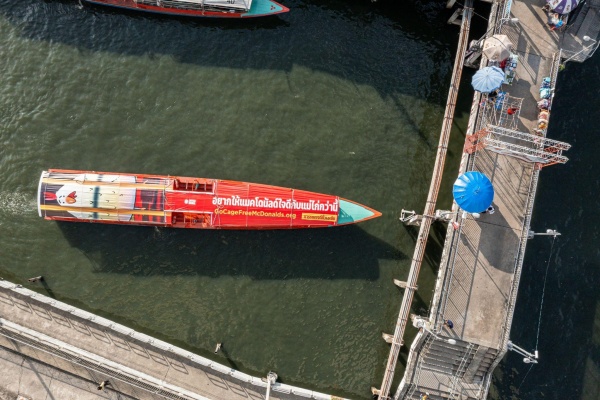 ซิเนอร์เจีย แอนิมอล องค์กรพิทักษ์สัตว์สากลเปิดตัวโฆษณารณรงค์ บนเรือโดยสารคลองแสนแสบ วอนแมคโดนัลด์ ร้านอาหารฟาสต์ฟู้ดที่ได้รับความนิยมเป็นอันดับสองในไทย ให้เลิกใช้ไข่ไก่จากฟาร์มที่ใช้กรงตับ ซึ่งก่อให้เกิดข้อถกเถียงมากมายเนื่องจากกรงลักษณะดังกล่าวมี ขนาดเล็กมากเสียจนแม่ไก่แทบขยับตัวไม่ได้ องค์กรฯ คาดการณ์ว่าโฆษณารณรงค์จะมีผู้พบเห็นกว่า 170,000 คน ซึ่งส่วนใหญ่เป็นผู้โดยสารที่สัญจรโดยเรือคลองแสนแสบเป็นประจำจากชานเมืองสู่ตัวเมืองกรุงเทพฯ โฆษณาดังกล่าวจะอยู่บนเรือจนถึงเดือนมิถุนายน 2565