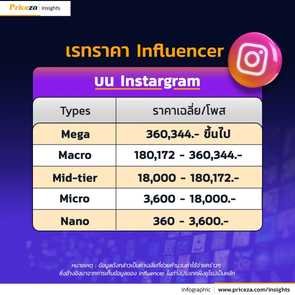 Micro Influencers ราคาเฉลี่ย 7,200 – 36,000 บาท