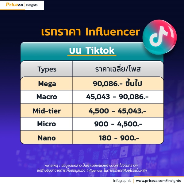 Mega Influencers ราคาเฉลี่ย 90,086 บาทขึ้นไป