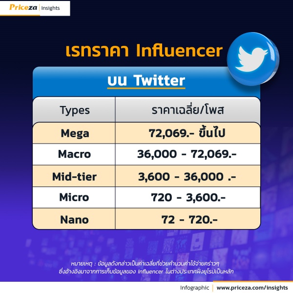 Mega Influencers ราคาเฉลี่ย 72,069 บาทขึ้นไป