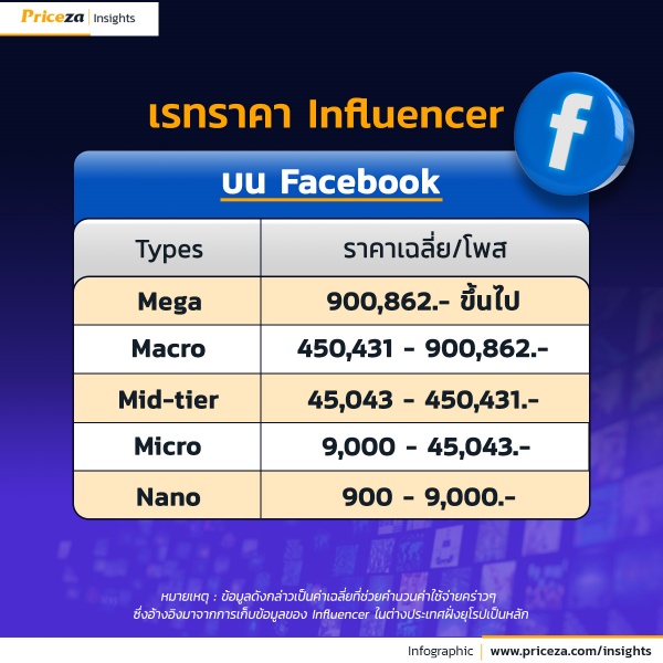 Mega Influencers ราคาเฉลี่ย 900,862 บาทขึ้นไป