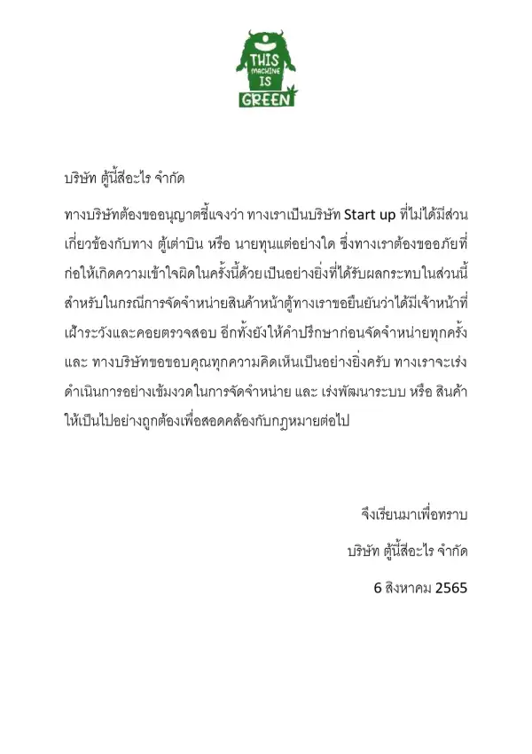 ล่าสุด บริษัทเจ้าของตู้แถลงการณ์ชี้แจงถึงประเด็นดังกล่าว ระบุว่า