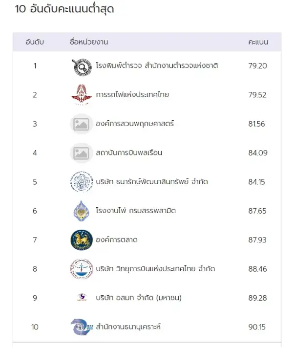 การรถไฟแห่งประเทศไทย 79.52 คะแนน