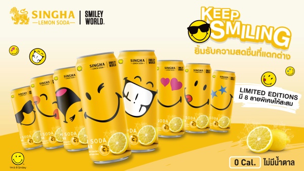 “สิงห์ เลมอน โซดา” จับมือ SMILEY WORLD ไลฟ์สไตล์แบรนด์ดังระดับโลก ส่ง 8 ดีไซน์ไอคอนยิ้มอันโด่งดังลงบนกระป๋อง สุดลิมิเต็ด อิดิชั่น ในคอนเซ็ปต์ “Keep Smiling ยิ้มรับความสดชื่นที่แตกต่าง” แจกความสุขด้วยใบหน้ายิ้มแย้ม เติมเต็มความสดชื่นที่ได้ในทุกวันด้วยความเปรี้ยวซ่าสะใจ ส่งท้ายปีนี้ผ่านช่องทางเซเว่น อีเลเว่นทุกสาขา ให้เหล่าสาวกได้ตามเก็บสะสมกันอย่างจุใจ