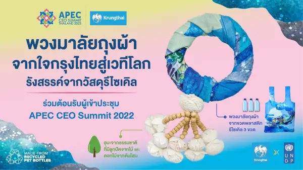 ‘กรุงไทย’ มอบพวงมาลัยถุงผ้า จากขวดพลาสติกรีไซเคิล ต้อนรับ APEC CEO Summit 2022