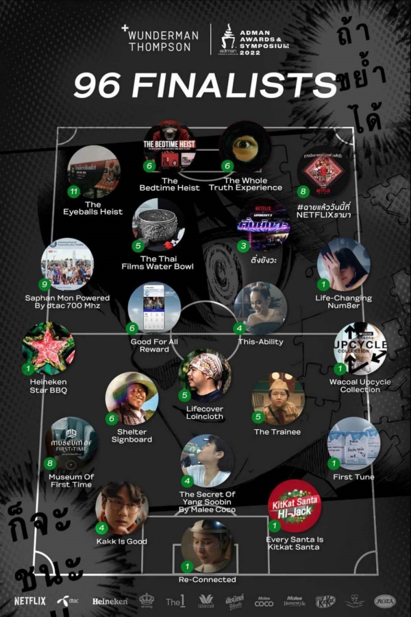 ประเทศไทย จะได้รับตำแหน่ง AGENCY OF THE YEAR มาครองแล้ว ยังสามารถคว้ารางวัลมาได้ถึง 96 รางวัล ครบทุกประเภททั้ง 16 รายการในการประกวด พร้อมรางวัลพิเศษอีกหนึ่ง Adman Advertising Agency of the Year 2022”