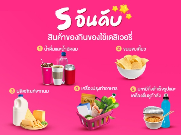 - สินค้าประเภทของกินของใช้เดลิเวอรี่ ยอดนิยม 5 อันดับแรก