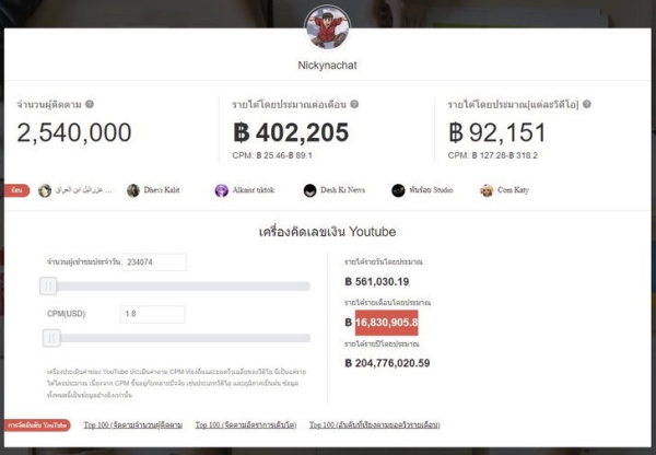 นอกจากนี้ ระบบดังกล่าวยังได้คำนวณจำนวนผู้เข้าชมประจำวัน พบว่ามีจำนวน 234,074 คน ค่า CPM (USD) อยู่ที่ 1.8 โดยระบบได้คำนวณรายได้รายวันโดยประมาณอยู่ที่ 561,030.19 บาท ขณะที่รายได้รายเดือนโดยประมาณอยู่ที่ 16,830,905.8 บาทเลยทีเดียว
