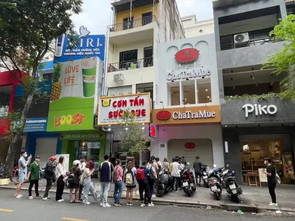 ภาพผู้คนที่ยืนต่อแถวเข้าคิวเพื่อรอซื้อสินค้าจากเมืองไทยอย่าง ชาตรามือ ที่เข้าไปปักหมุดล่าสุดที่ประเทศเวียดนาม เมืองโฮจิมินท์ซิตี้ ถือเป็นประเทศลำดับที่ 10 ของ “ชาตรามือ” ไปเสิร์ฟความอร่อยในต่างแดน โดยจะเปิดให้บริการเต็มรูปแบบวันนี้ (12 มิ.ย.2566)