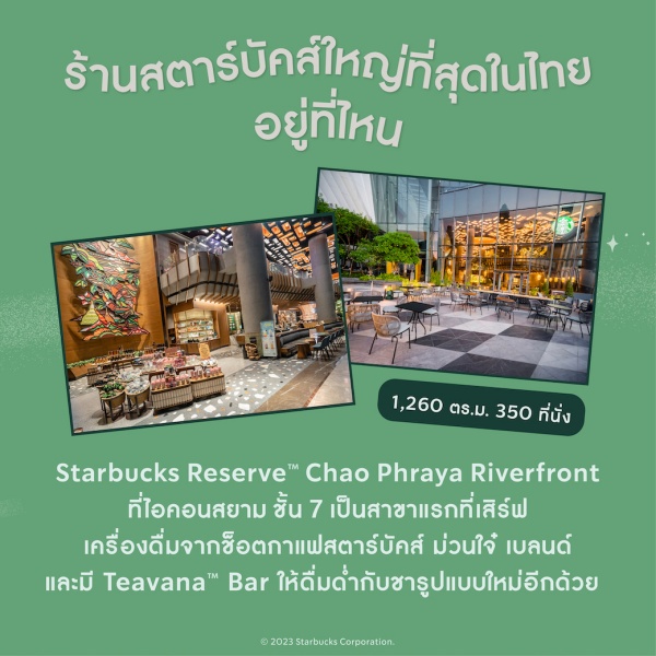 4. ร้านสตาร์บัคส์ที่มีขนาดใหญ่ที่สุดในไทยคือร้านสตาร์บัคส์ รีเสิร์ฟ เจ้าพระยา ริเวอร์ฟร้อนท์ ที่ไอคอนสยาม ชั้น 7
