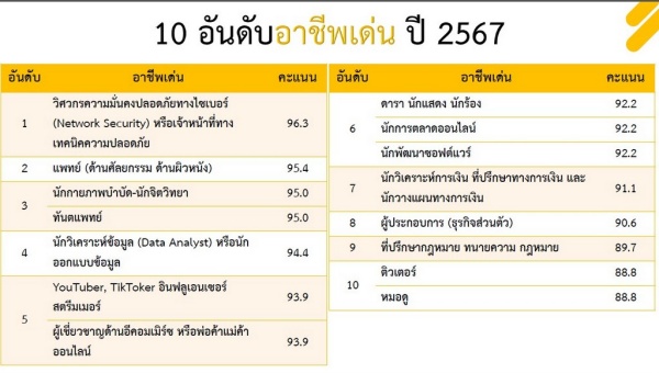 เปิด 10 อาชีพเด่นปี 67 ‘สายมู’มาแรงรั้งท้าย