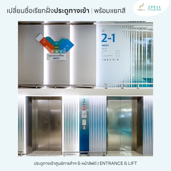 ชื่อฝั่งใหม่นี้จะใช้เรียกตั้งแต่อาคารจอดรถจนเข้ามาถึงภายในศูนย์การค้าฯ และจะเริ่มใช้ชื่อฝั่งใหม่ในวันที่ 1 สิงหาคม นี้แล้วด้วย แต่จำไม่ยากเลยใช่ไหมละ จะสะดวกเรียกตามชื่อฝั่ง หรือเรียกตามสีก็ได้หมด แล้วมาใช้ชีวิตกันแบบไร้ขีดจำกัด ทุกไลฟ์สไตล์ สนุก ครบ จบที่เดียว ศูนย์การค้าฟิวเจอร์พาร์คและสเปลล์