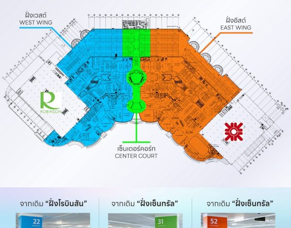 จากเดิม “ฝั่งเซ็นทรัล” เปลี่ยนเป็น EAST WING ฝั่งอีสต์ (สีส้ม)