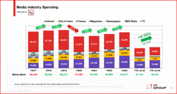 อัพเดทเม็ดเงินอุตสาหกรรมโฆษณาล่าสุดปีนี้ถึงเดือนกรกฏาคมอยู่ที่ 49,433 ล้านบาทหรือ+4.9% จากปี 2023