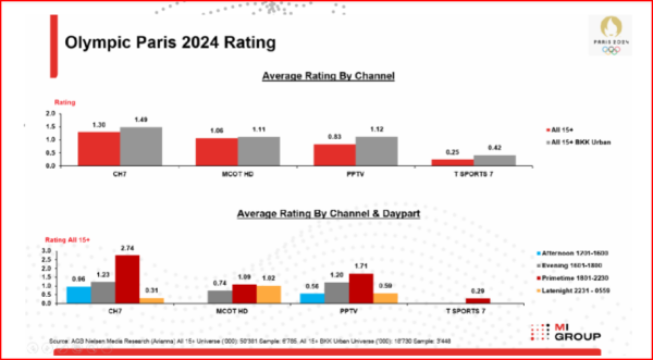 Paris Olympic 2024 ที่เพิ่งจบไป ได้รับความสนใจจากผู้ติดตามชมการถ่ายทอดสดโดยเฉพาะอย่างยิ่งกีฬาสำคัญๆที่นักกีฬาของไทยได้มีโอกาสเข้าชิงเหรียญในรอบลึกๆเช่นแบดมินตันเทควันโด ยกน้ำหนักและมวย เป็นต้น สร้างความคึกคักจากเงินสนับสนุนถ่ายทอดโดยสปอนเซอร์ได้เกินคาด โดย MI GROUP ประเมินเม็ดเงินโฆษณาและสื่อสารการตลาดในไทยของ