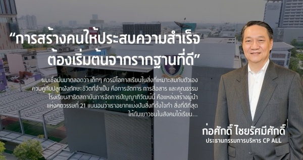 ปณิธานความมุ่งมั่นของ นายก่อศักดิ์ ไชยรัศมีศักดิ์ ประธานกรรมการบริหาร บมจ.ซีพี ออลล์ ผู้บริหารเซเว่น อีเลฟเว่น และ เซเว่น เดลิเวอรี่ เชื่อมั่นว่า เด็กๆ ควรมีโอกาสเรียนในสิ่งที่เหมาะสมกับตัวเอง ควบคู่กับการปลูกฝังทักษะชีวิตที่จําเป็น คือการจัดการ การสื่อสาร และคุณธรรม ซึ่งเป็นจุดเริ่มต้นทำให้เกิดโรงเรียนสาธิตสถาบันการจัดการปัญญาภิวัฒน์ เพื่อแบ่งปันสิ่งที่ตั้งใจทํา สิ่งที่ดีที่สุด ให้กับเยาวชนไทย ได้เรียนรู้ผ่านหลักสูตรการศึกษาของไทยที่มีความทันสมัย สร้างทักษะที่จำเป็นในการประกอบอาชีพ ที่สำคัญไม่มีการเก็บแป๊ะเจี๊ยะ นักเรียนทุกคนต้องผ่านการสอบคัดเลือกเท่านั้น จึงเกิดเครือข่ายที่มีคุณภาพ