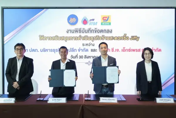 OR หนุนธุรกิจร้านสะดวกซื้อ “Jiffy” จับมือ “ซี.เจ. เอ็กซ์เพรส กรุ๊ป” รับความต้องการลูกค้า ดันขึ้นสู่ผู้นำธุรกิจค้าปลีกเต็มตัวนายดิษทัต ปันยารชุน ประธานเจ้าหน้าที่บริหาร บริษัท ปตท. น้ำมันและการค้าปลีก จำกัด (มหาชน) หรือ OR เป็นประธานในพิธีลงนามบันทึกข้อตกลงให้การสนับสนุนการดำเนินธุรกิจร้านสะดวกซื้อ Jiffy ระหว่าง บริษัท ปตท.บริหารธุรกิจค้าปลีก จำกัด หรือ PTTRM ในฐานะกลุ่มบริษัทในเครือของบริษัท ปตท.น้ำมันและการค้าปลีก จำกัด หรือ OR ลงนามโดยนายชุมพล สิริปูชกะ กรรมการผู้จัดการ PTTRM และบริษัท ซี.เจ. เอ็กซ์เพรส กรุ๊ป จำกัด ลงนามโดยคุณวีรธรรม เสถียรธรรมะ ประธานเจ้าหน้าที่บริหาร CJ Express Group)