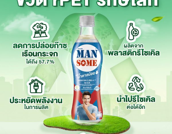 แมนซั่มผู้นำตลาดฟังก์ชันัลดริงก์สำหรับผู้ชาย พร้อมสนับสนุนให้ผู้ชายทุกคนดูดีในสไตล์ของตัวเอง และสนับสนุนการทำความดีทั้งเพื่อตัวเองและเพื่อโลก จึงพัฒนาไปอีกขั้น ด้วยการลดปริมาณพลาสติกใหม่ (Virgin Plastic PET) ด้วยการเลือกใช้ rPET (Recycled Polyethylene Terephthalate) หรือพลาสติกรีไซเคิลมาผลิตเป็นบรรจุภัณฑ์ ซึ่งจะช่วยลดปริมาณขยะพลาสติก และช่วยลดการปล่อยก๊าซเรือนกระจกได้มากถึง 57.7% เมื่อเทียบกับการผลิตเม็ดพลาสติกใหม่ สอดคล้องกับเป้าหมายความยั่งยืนของกลุ่มธุรกิจ TCP ทั้งด้านการพัฒนาบรรจุภัณฑ์ให้รีไซเคิลได้ 100% ภายในปี 2567 และผลักดันธุรกิจให้บรรลุเป้าหมายการปล่อยก๊าซเรือนกระจกสุทธิเป็นศูนย์ หรือ Net Zero ภายในปี 2593 ไปพร้อมกันทั่วโลก