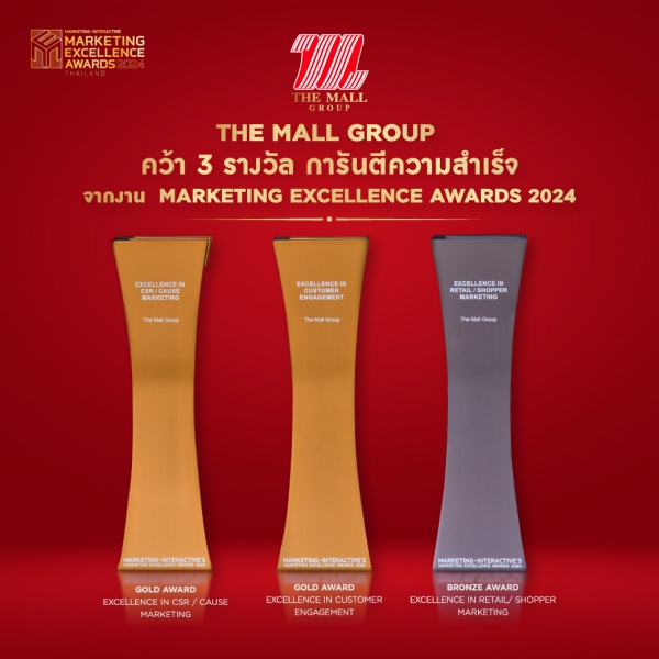 กลุ่มบริษัทเดอะมอลล์ กรุ๊ป ผู้พัฒนาธุรกิจค้าปลีกชั้นนำของประเทศไทย ตอกย้ำความสำเร็จของการเป็นผู้นำการพัฒนาแคมเปญด้านตลาด คว้า 3 รางวัลสำหรับแคมเปญการตลาดที่ครองใจผู้บริโภคทุกมิติ ในงานประกาศรางวัล Marketing Excellence Awards 2024 จัดโดย MARKETING-INTERACTIVE ผู้นำสื่อออนไลน์ด้านการตลาดจากประเทศสิงคโปร์ รางวัลครั้งนี้สะท้อนแนวคิดสร้างสรรค์ของกลุ่มเดอะมอลล์ในการพัฒนาแคมเปญที่สะท้อนศักยภาพผู้นำธุรกิจค้าปลีกที่ครองใจลูกค้าอย่างต่อเนื่องมากว่า 4 ทศวรรษ พร้อมคว้า 2 รางวัลระดับสากล จากเวที HR Asia Awardตอกย้ำการเป็นองค์กรต้นแบบด้านการบริหารทรัพยากรบุคคล