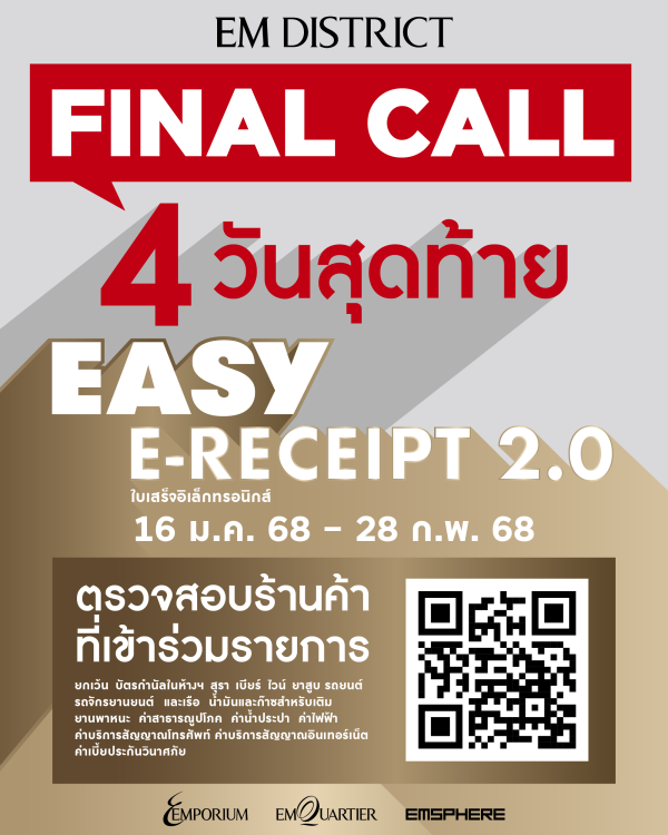 FINAL CALL โค้งสุดท้ายแล้ว สำหรับโครงการ “EASY E-RECEIPT 2.0” โอกาสทองสำหรับนักช้อป