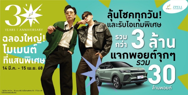 ฉลอง 30 ปี ‘Future Park & Zpell’ ลุ้นรับรถยนต์ และของขวัญรวมกว่า 1.7 ล้าน!