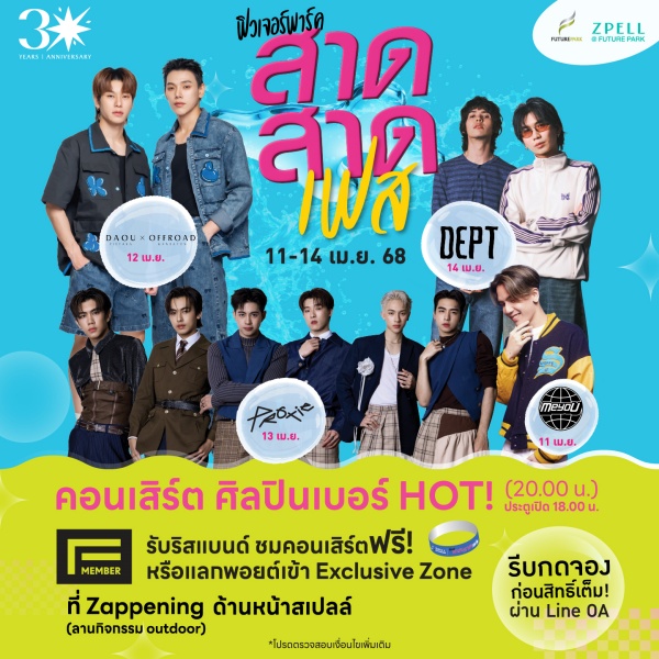 รับริสแบนด์เข้าโซน EXCLUSIVE หน้าเวที ฟรี! รับสิทธิ์ง่ายๆ ผ่าน Line Official Account: @FuturePark