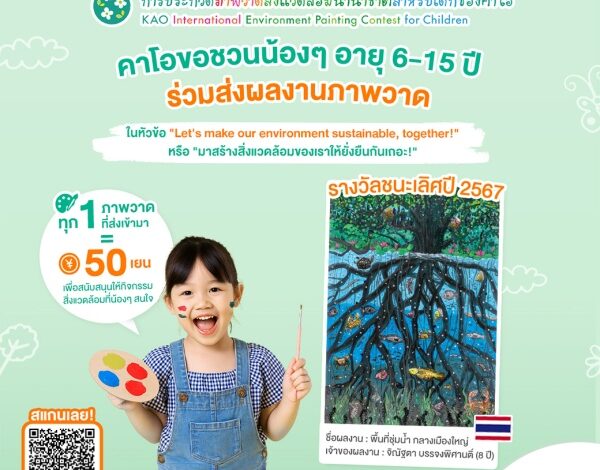 บริษัท คาโอ อินดัสเตรียล (ประเทศไทย) จำกัด (Kao) ผู้ผลิตสินค้าอุปโภคบริโภคชั้นนำจากญี่ปุ่นและเจ้าของผลิตภัณฑ์ที่คุ้นเคยในครัวเรือนไทย เช่น แอทแทค, บิโอเร, ไฮเตอร์, มาจิคลีน และลอรีเอะ เชิญชวนเยาวชนไทยหัวใจสีเขียว อายุ 6-15 ปี (นับถึงเดือนสิงหาคม 2568) มาร่วมส่งผลงานศิลปะถ่ายทอดจินตนาการและมุมมองที่มีต่อสิ่งแวดล้อมและอนาคตของโลกใบนี้ผ่านปลายพู่กัน ใน “โครงการประกวดภาพวาดสิ่งแวดล้อมนานาชาติ ระดับเยาวชน โดยคาโอ ครั้งที่ 16” ภายใต้หัวข้อ ‘มาสร้างสิ่งแวดล้อมของเราให้ยั่งยืนกันเถอะ!’ ซึ่งผลงานทุกชิ้นที่ส่งเข้าร่วมประกวดจะได้เป็นตัวแทนประเทศไทยร่วมแข่งขันในเวทีระดับโลก พร้อมลุ้นรับของรางวัลสุดพิเศษจากประเทศญี่ปุ่นพร้อมใบประกาศนียบัตร