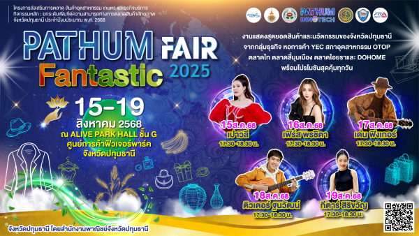 ห้ามพลาด! สำหรับผู้ที่มองหาสินค้าดีมีคุ ณภาพ ช็อปเพลิน เดินสนุก อิ่มอร่อย และรับแรงบันดาลใจจากผู้ ประกอบการตัวจริง ขอเชิญมาร่วมงาน “Pathum Fantastic Fair 2025” 15-19 สิงหาคมนี้ที่ Alive Park Hall ชั้น G ศูนย์การค้าฟิวเจอร์พาร์ค