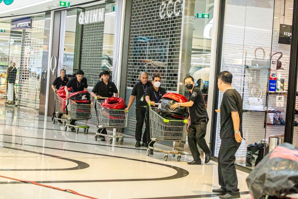 พร้อมด้วยพนักงานและเจ้าหน้าที่ จากร้านค้าภายในศูนย์การค้า เช่น ห้างสรรพสินค้าโรบินสัน เซ็นทรัล บิ๊กซี โฮมโปร โรงภาพยนตร์เมเจอร์ และร้านค้าเช่าต่าง ๆ เข้าร่วมการฝึกซ้อมอย่างพร้ อมเพรียง