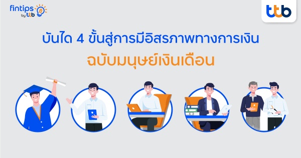 ‘อิสรภาพทางการเงิน’ เป็นวิชาสำคัญสำหรับมนุษย์เงินเดือนที่ควรทำความเข้าใจ และเริ่มต้นวางแผนตั้งแต่วันแรกที่เริ่มทำงาน ถ้าอยากใช้ชีวิตอย่างเต็มที่ มีอิสระอย่างใจฝัน หมดกังวลกับเรื่องเงินในอนาคต fintips by ttb ขอแนะนำแนวคิด “บันได 4 ขั้นสู่การมีอิสรภาพทางการเงิน” ฉบับมนุษย์เงินเดือน ให้พร้อมลงมือวางแผนเพื่อเดินไปสู่เป้าหมายได้สำเร็จ ดังนี้