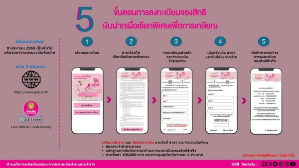 สำหรับวิธีลงทะเบียนจองสิทธิเงินฝากเผื่อเรียกพิเศษเพื่อการเกษียณ มี 5 ขั้นตอนดังนี้