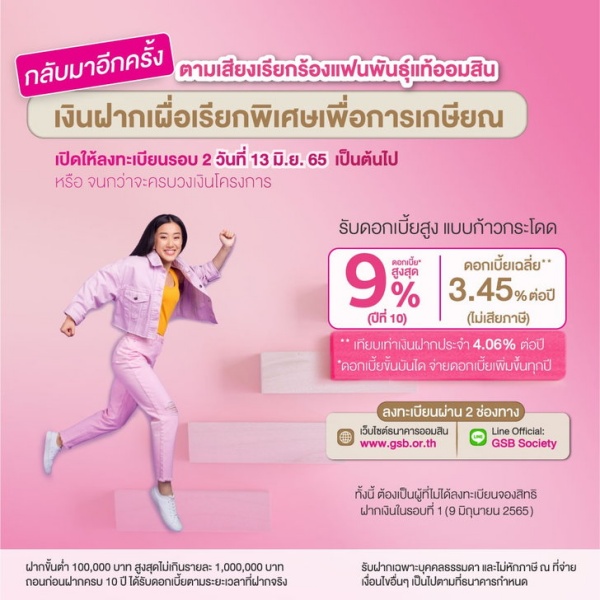 กลับมาอีกครั้ง!’ออมสิน’เปิดลงทะเบียนจองสิทธิเงินฝากดอกเบี้ย 9% รอบ 2 เริ่มวันนี้
