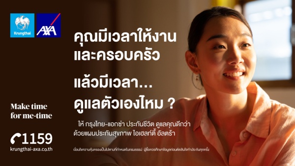 บมจ.กรุงไทย-แอกซ่า ประกันชีวิต ผู้นำประกันชีวิต และสุขภาพ ตอกย้ำความมุ่งมั่นในการสนับสนุน ให้ทุกคนมีสุขภาพที่ดีทั้งกายและจิตใจ ส่ง 2 โฆษณาออนไลน์ “Make time for me-time 2.0” สร้างแรงบันดาลใจให้ทุกคนหันมาให้เวลากับตัวเอง ผ่านเรื่องราวของตัวละครที่เป็นกลุ่ม Sandwich Generation ที่ทำงานควบคู่ไปกับการดูแลคนในครอบครัว จนลืมไปว่าตัวเองต้องการเวลาเช่นกัน แต่โชคดีที่มี กรุงไทย-แอกซ่า ประกันชีวิต ช่วยดูแลและให้ความคุ้มครอง เตรียมแผนประกันสุขภาพที่ครอบคลุมทุกความต้องการ (ประกันสุขภาพไอเฮลท์ตี้ อัลตร้า) และประกันคุ้มครองชีวิตและโรคร้ายแรงตลอดชีพ (ประกันโรคร้ายแรงไอชิลด์) ที่ช่วยให้ตัวละครสามารถดูแลตัวเองได้ดีกว่าเดิม อุ่นใจ และพร้อมดูแลคนอื่นได้ดีขึ้น เพราะที่ กรุงไทย-แอกซ่า ประกันชีวิต มุ่งมั่น ใส่ใจสุขภาพของคนไทยและลูกค้า พร้อมสนับสนุน และร่วมสร้างนิยามใหม่ในการดูแลสุขภาพไปกับทุกคน โดยเริ่มต้นจากการดูแลตนเอง เพราะหากเรามีสุขภาพที่ดี เราจะดูแลคนอื่นให้ดียิ่งขึ้น ซึ่งสอดคล้องกับนโยบายของบริษัทฯ ที่จะอยู่เคียงข้างทุกความเชื่อมั่น ดูแลกันตลอดไป