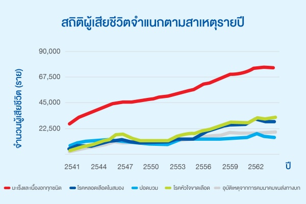 “โรคมะเร็ง” เป็นโรคที่ร้ายแรงและมีผลกระทบต่อประชากรหลายล้านคนทั่วโลก จากข้อมูลสำนักงานสภาพัฒนาการเศรษฐกิจและสังคมแห่งชาติ พบว่าโรคมะเร็งเป็นสาเหตุการเสียชีวิตที่สูงที่สุดของไทย โดยในปี 2564 มีผู้เสียชีวิตจากโรคมะเร็ง 83,795 ราย หรือคิดเป็นชั่วโมงละเกือบ 10 คน นอกจากความเจ็บป่วยทางกาย ผลกระทบทางจิตใจต่อผู้ป่วยและคนใกล้ชิด หรือการเสียชีวิตแล้ว โรคมะเร็งยังส่งผลกระทบต่อด้านการเงินอย่างมาก ทั้งค่ารักษาพยาบาลโดยตรง ค่าใช้จ่ายทางอ้อม และการเสียโอกาสในการสร้างรายได้ ซึ่งปัจจุบันแนวทางการรับมือกับโรคมะเร็งที่สามารถช่วยเพิ่มโอกาสการรักษาหายขาด ทำได้ไม่ยุ่งยาก และค่าใช้จ่ายต่ำกว่าคือการตรวจคัดกรองโรคมะเร็ง เนื่องจากเมื่อตรวจพบโรคมะเร็งได้เร็ว การรักษามักจะได้ผลดีมากขึ้น และโอกาสการกลายเป็นมะเร็งระยะลุกลามลดลง