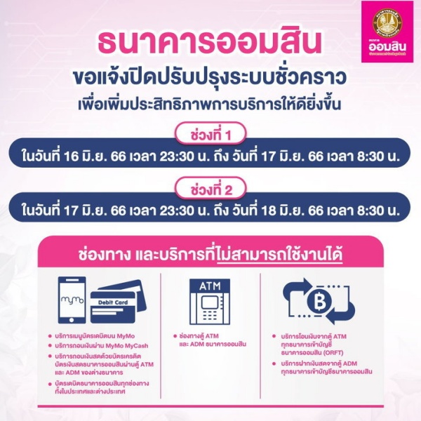 งดให้บริการผ่านช่องทางต่างๆ ชั่วคราวในวันอาทิตย์ที่ 11 มิ.ย. 66 เวลา 01.00-09.00 น.