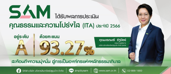 SAM มู่งสู่องค์กรธรรมภิบาล ได้รับผลประเมินคุณธรรมและความโปร่งใสปี 66 ที่ระดับ A