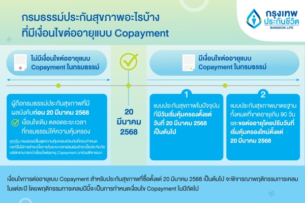สำหรับใครที่กังวลเงื่อนไขต่ออายุแบบ Copayment ขอแนะนำซื้อประกันสุขภาพไว้ก่อน เพื่อให้กรมธรรม์ประกันสุขภาพมีผลบังคับก่อน 20 มีนาคม 2568 สามารถกดซื้อผ่านช่องทางออนไลน์ได้เลย สะดวก ไม่ต้องตรวจสุขภาพ >> https://bla.bangkoklife.com/cphprarticle
