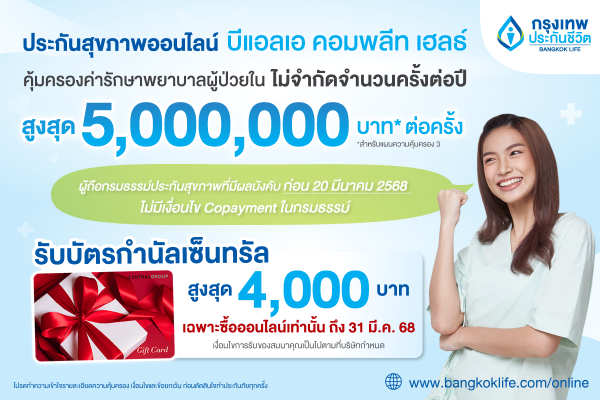 ปัจจุบัน กรุงเทพประกันชีวิตมีแบบประกันสุขภาพออนไลน์ที่ตอบโจทย์ความคุ้มครองครอบคลุม ซึ่งก็คือ ประกันสุขภาพออนไลน์ บีแอลเอ คอมพลีท เฮลธ์ ที่ซื้อง่าย ไม่ต้องตรวจสุขภาพ