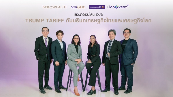 SCB WEALTH จัดงานเสวนาออนไลน์ ผ่านทาง SCB WEALTH Line official ในหัวข้อ “Trump Tariff กับบริบท เศรษฐกิจไทยและเศรษฐกิจโลก” โดยการผนึกกำลังกันของหน่วยงาน SCB EIC , SCB CIO , SCB Finance Market และ บริษัทหลักทรัพย์ อินโนเวสท์ เอกซ์ ให้แก่ลูกค้า SCB WEALTH และนักลงทุนทั่วไป ได้มีความเข้าใจเกี่ยวกับนโยบาย Trump Tariff และผลกระทบที่จะเกิดขึ้นกับเศรษฐกิจโลกและไทย เพื่อเตรียมความพร้อมในการรับมือกับสถานการณ์ที่เปลี่ยนแปลงอย่างรวดเร็ว พร้อมให้คำแนะนำการลงทุนที่เหมาะสมในช่วงเวลานี้ เพื่อให้พอร์ตลงทุนไม่ผันผวนและมีเสถียรภาพ